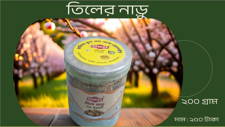 জনপ্রিয় তিলের লাড়ু এখন ২০০ গ্রাম প্যাকেজে – যা আপনার পরিবারের জন্য আদর্শ একটি স্বাস্থ্যকর মিষ্টি স্ন্যাক।