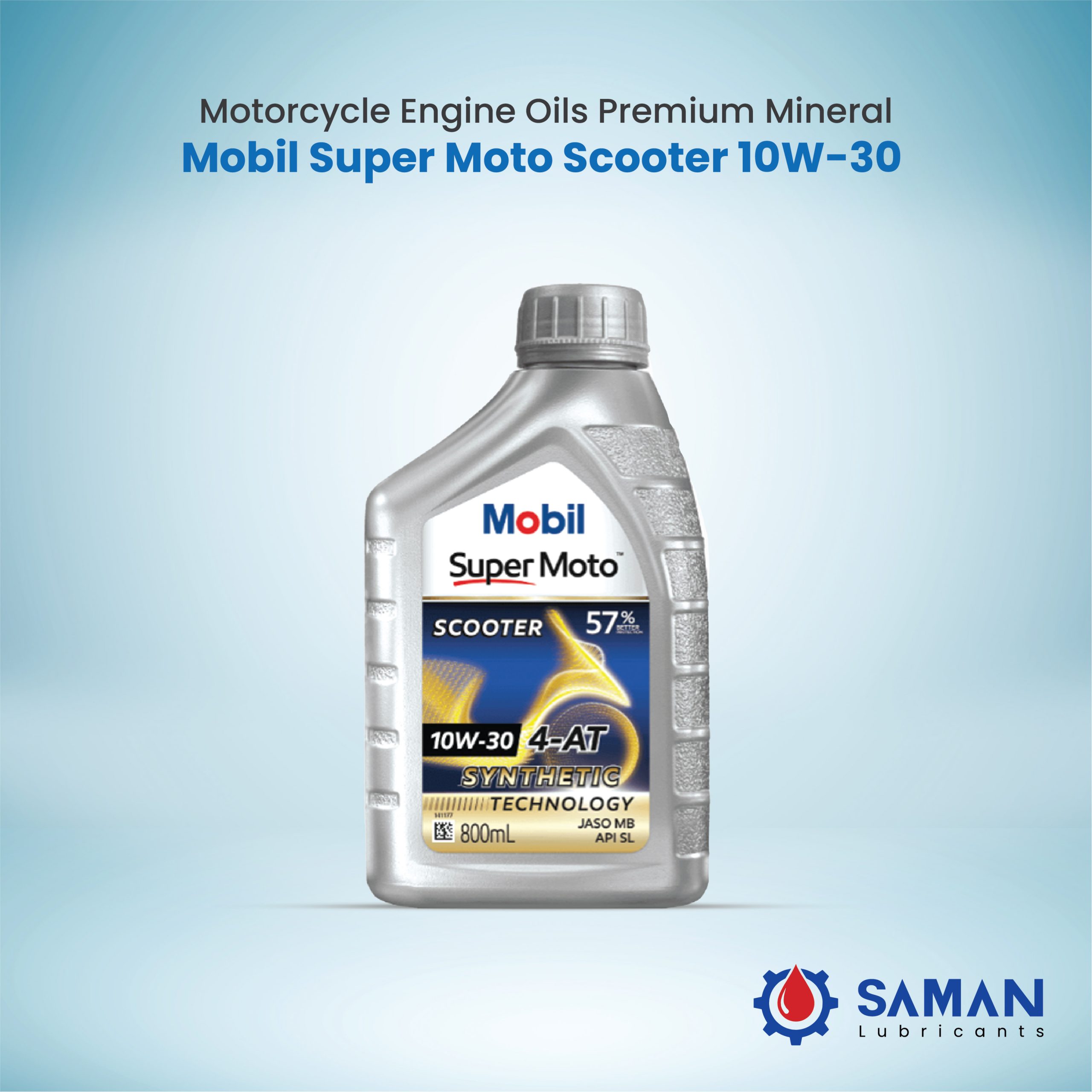 | Features and Benefits | Mobil Super Moto™ Scooter 10W-30 is a four-stroke scooter engine oil blended by the makers of Mobil 1, with synthetic technology boosted by the latest API SL advanced additive technology. It provides 57% more wear protection* to enhance scooter engine life and improve fuel economy. Heat-activated anti-wear molecule™ helps to maintain viscosity of the oil at high temperature to prevent engine wear. *57% more wear protection based on industry standard engine test sequence IVA in API SL. Features Advantages and Potential Benefits  |