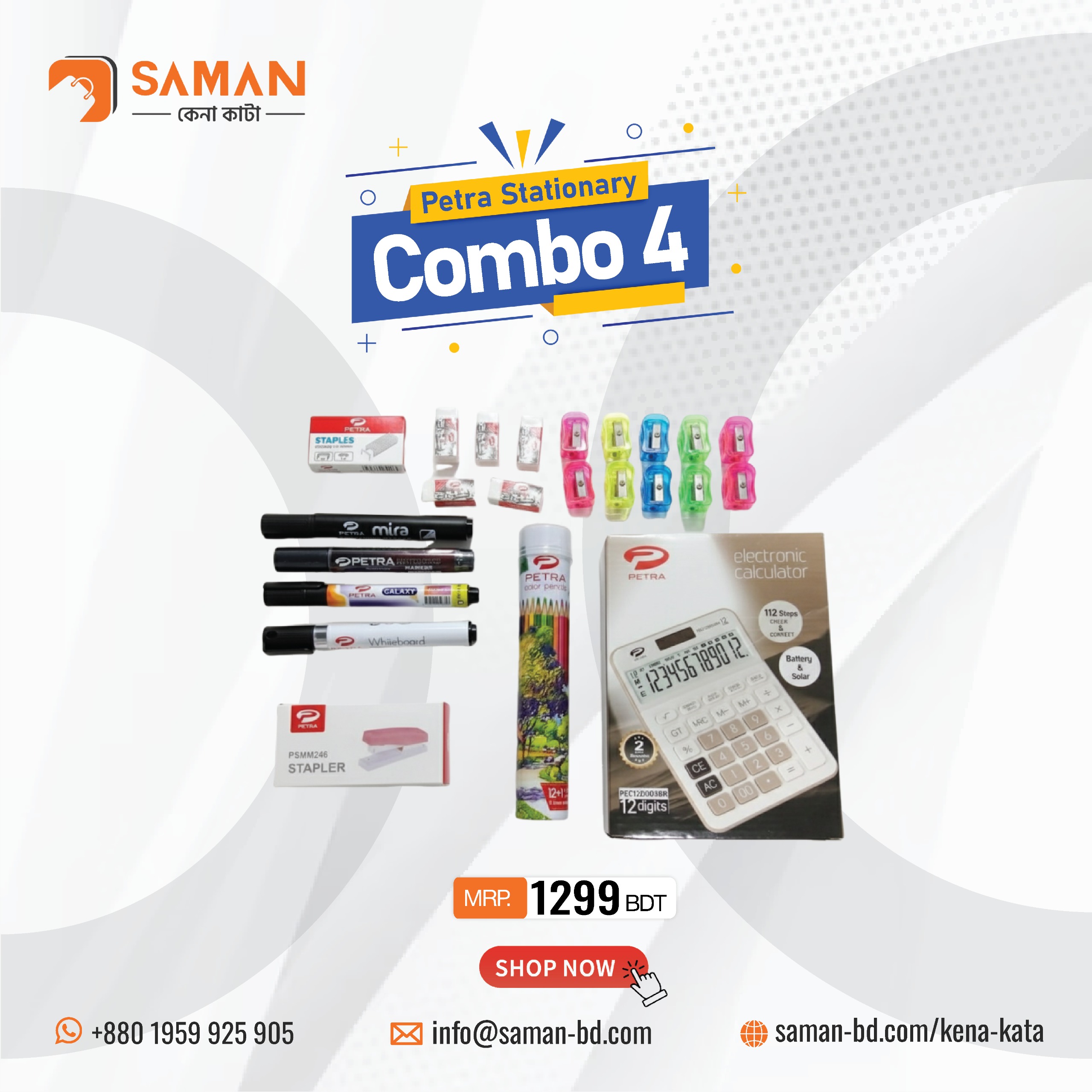 No Item MRP Qnty 1 Petra New Big Calculator Brown 850 1 2 Petra Neon Small Sharpner 65 10 3 Petra Eraser Small White 40 5 4 Petra Phoenix Whiteboard Marker Black 85 1 5 Petra Galaxy Whiteboard Marker Black 45 1 6 Petra Mira Whiteboard Marker Black BT 52 1 7 Petra Mira Permanent …