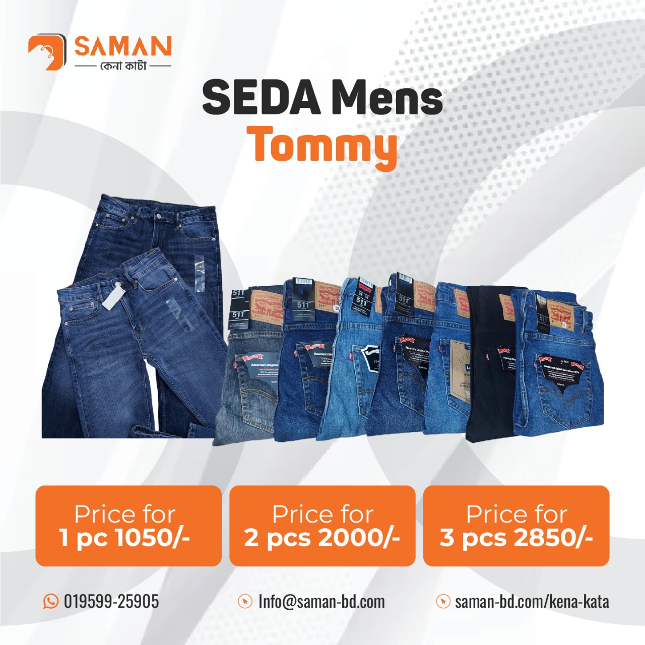 SEDA Mens Tommy Jeans Upgrade your style with Tommy Jeans Premium Quality Stylish & Comfortable Fit Price: 1 pc โ 1050/- 2 pcs โ 2000/- 3 pcs โ 2850/- Order Now: 019599-25905